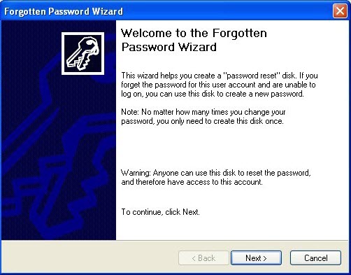 3. When the Forgotten Password Wizard appears, click Next to continue.