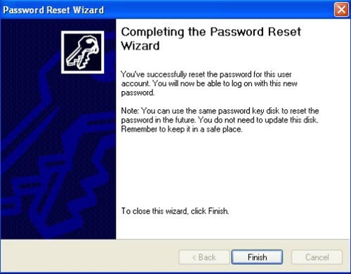 7. You have successfully reset your user account password. Click Finish, then you can access Windows XP with new password.